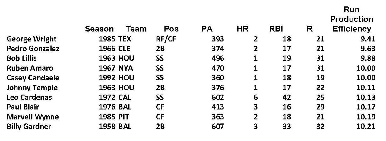 Last week I shared a little analysis about Enzo Hernandez and his record-tying 12-RBI season. I explained that it wasn't quite as bad as it looked, because he also scored 58 runs, so he definitely made a contribution on offense. Today, I want to look at the least productive seasons in baseball history for lineup regulars.